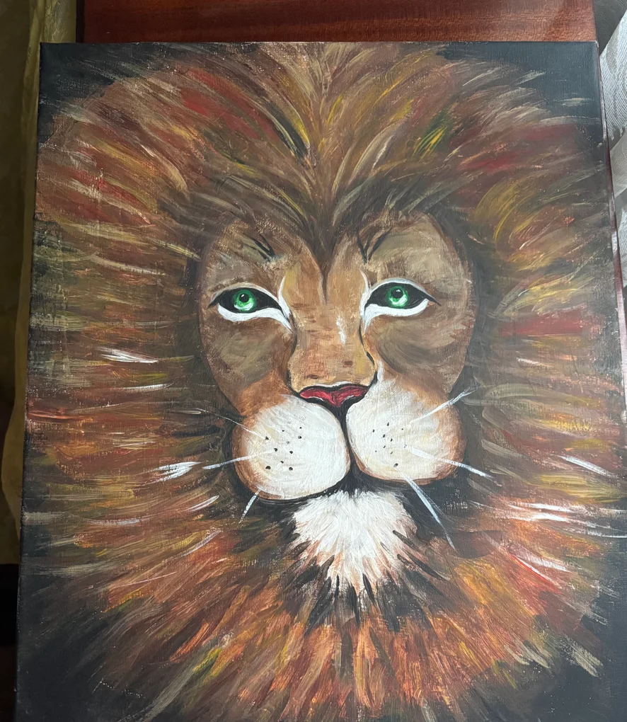 🖼️ Presentazione del dipinto Titolo: „Lo Sguardo del Re” Dimensioni: [40x50 cm] Tecnica: Acrilico su tela Anno: 2025 Un dipinto originale che esprime forza, calma e potere interiore. Il leone, con intensi occhi verdi, domina la composizione grazie alla sua criniera imponente e al contrasto cromatico. Ideale per uno spazio che ha bisogno di personalità. ✔️ Dipinto unico, firmato dall’artista ✔️ Non necessita di cornice (può essere appeso direttamente) Title: “The King’s Gaze” Size: [40x50 cm] Technique: Acrylic on canvas Year: 2025 An original painting that conveys strength, calm, and inner power. The lion, with intense green eyes, dominates the composition through its rich mane and strong color contrast. Ideal for a space that needs personality. ✔️ Unique piece, signed by the artist ✔️ No frame needed (ready to hang) PRICE 350€